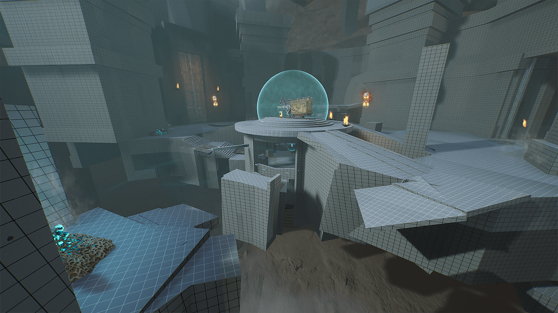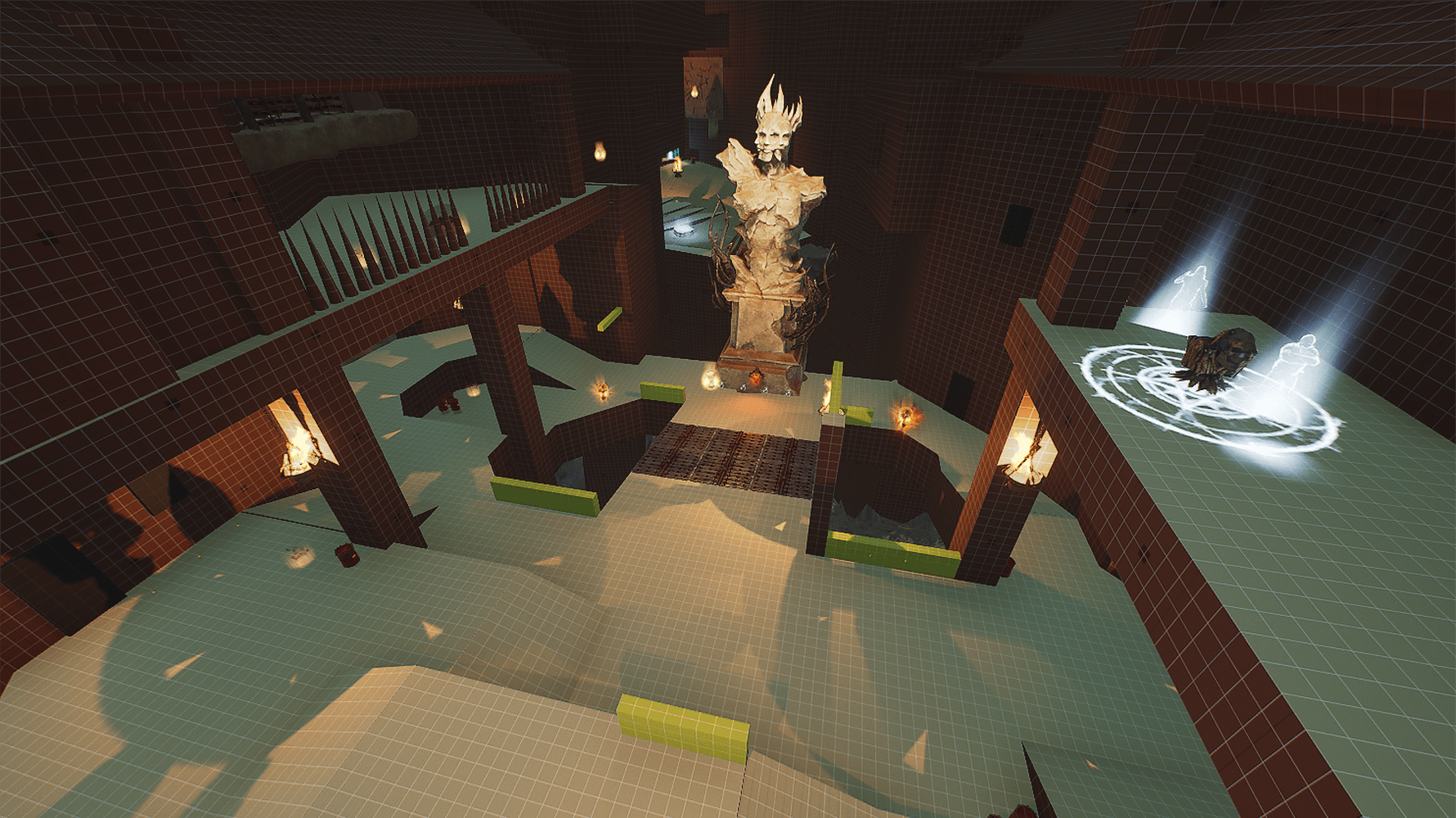 An objective arena where players collect souls and throw them into a vessel with souls. It consists of four chapels, accessed via different mechanics, each containing a soul extractor. A hole in the center increases the risk of players throwing them into a vessel. Two bridges allow for easier throwing.